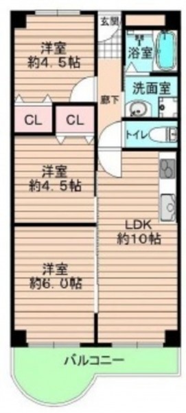 こちらのお部屋は2階部分、間取りは3LDKタイプです。
