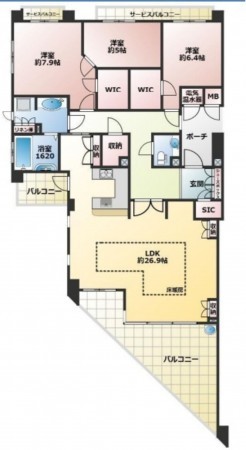 - オール電化、床暖房、システムキッチン、カウンターキッチン、IHクッキングヒーター、食器洗浄乾燥機、シャンプードレッサー、浴室乾燥機、洗浄便座、ウォークインクローゼット、複層ガラス、追い焚き、オートロック、ペット可、角部屋、エレベーター、宅配ボックス