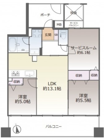 6階部分、間取りは2SLDKタイプです。2LDKタイプの間取りに納戸が付いております。