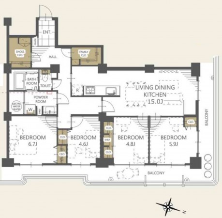 10階部分、間取りは4LDKタイプです。