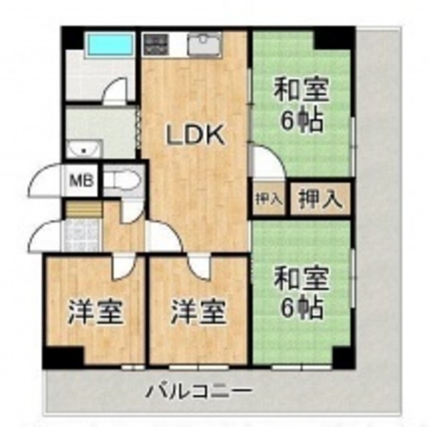 引き回しバルコニーで各居室からバルコニーに出られます。風通し良く快適にお過ごしいただけますね。