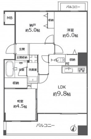 4階部分、3LDKタイプの角部屋のお部屋でございます。