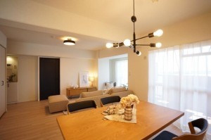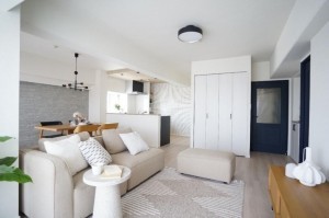 リビングと廊下にエコカラット新調 全室フローリング、クロス張替 全室建具新調
