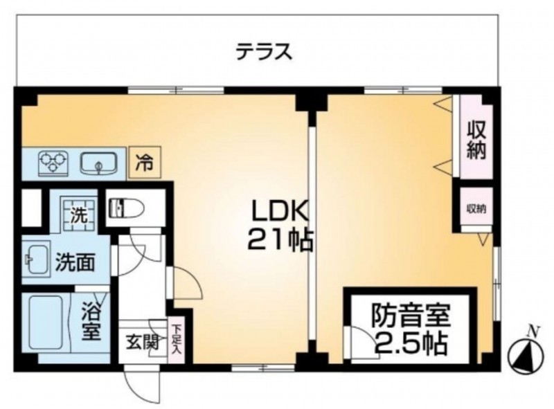 1階部分で、階下と隣に接しているお部屋はございませんので生活音に配慮する必要がありません。