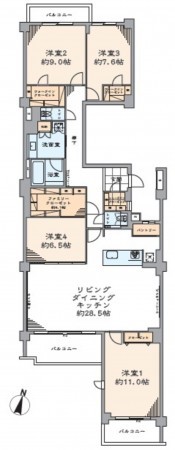 南向きのバルコニーで日当たり良く、また窓も多くございますので、風通しよく快適にお過ごしいただけます。