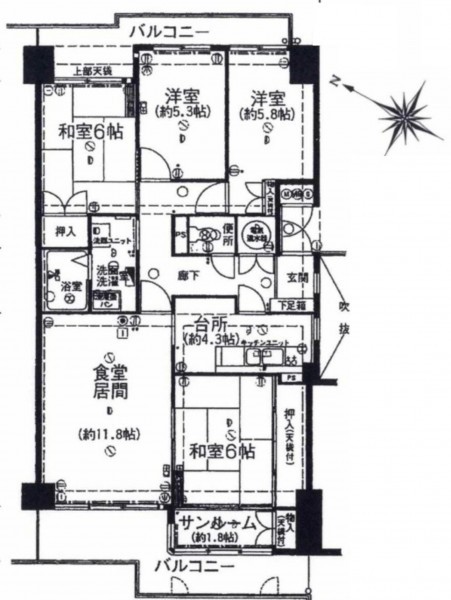 2面バルコニーで全てのお部屋に開口部がございますので、風通しよく快適にお過ごしいただけます。