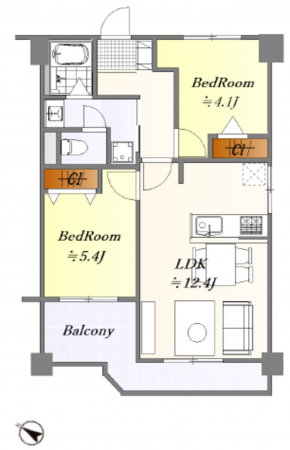 4階部分、2LDKタイプのお部屋でございます。