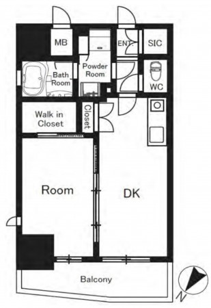 13階部分、間取りは1DKタイプです。