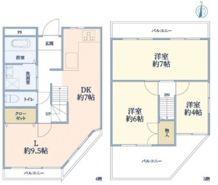 4.5階部分のメゾネットタイプですので、戸建感覚でお住まいいただけます。