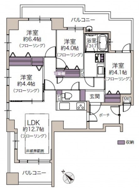 浴室乾燥機、床暖房など充実した設備が整っています。