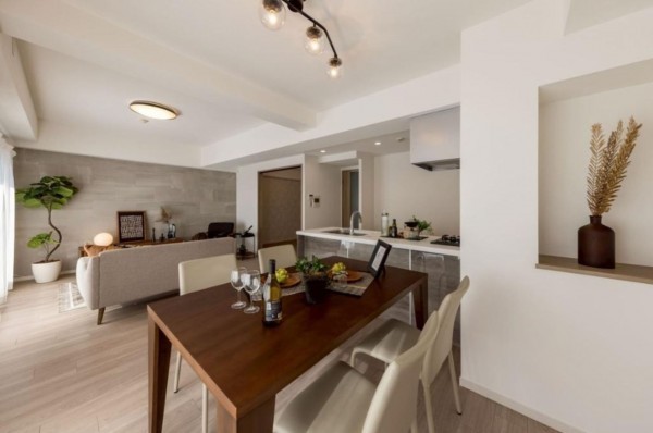 - システムキッチン、カウンターキッチン、食器洗浄乾燥機、シャンプードレッサー、洗浄便座、浴室乾燥機、床暖房、ウォークインクローゼット、CATV、モニタ付インターホン、オートロック、エレベーター、ペット不可 宅配ボックス