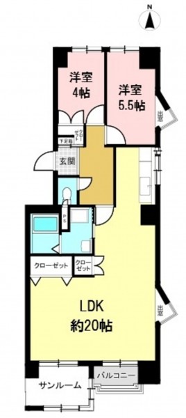 5階部分、2LDKタイプの間取りです。