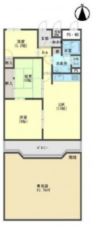 専有面積は60㎡台、間取りは3LDKタイプが多いファミリー向けのマンションです。