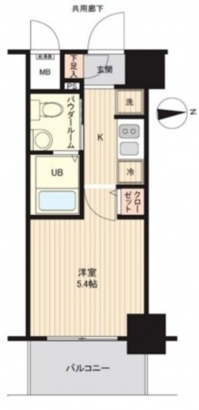 間取りは1Kタイプ、シングル世帯にお勧めのマンションです。