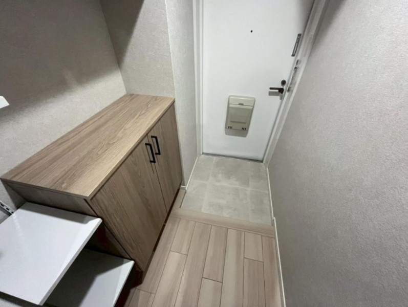 玄関扉室内側シート貼り 下駄箱新調(セパレート)