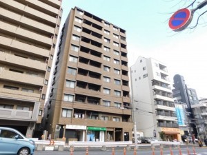 11階建・総戸数41戸で、タイル貼りの外観はシックで落ち着いた佇まい。